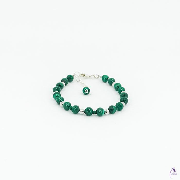 Elegantna zapestnica kolekcije Argo, ki je narejena iz Malahita ter rodiniranega srebra 925. Zapestnica je nizana na mehko, vendar močno jekleno žico. Slika je simbolična. Možna so manjša odstopanja v barvi in teži.