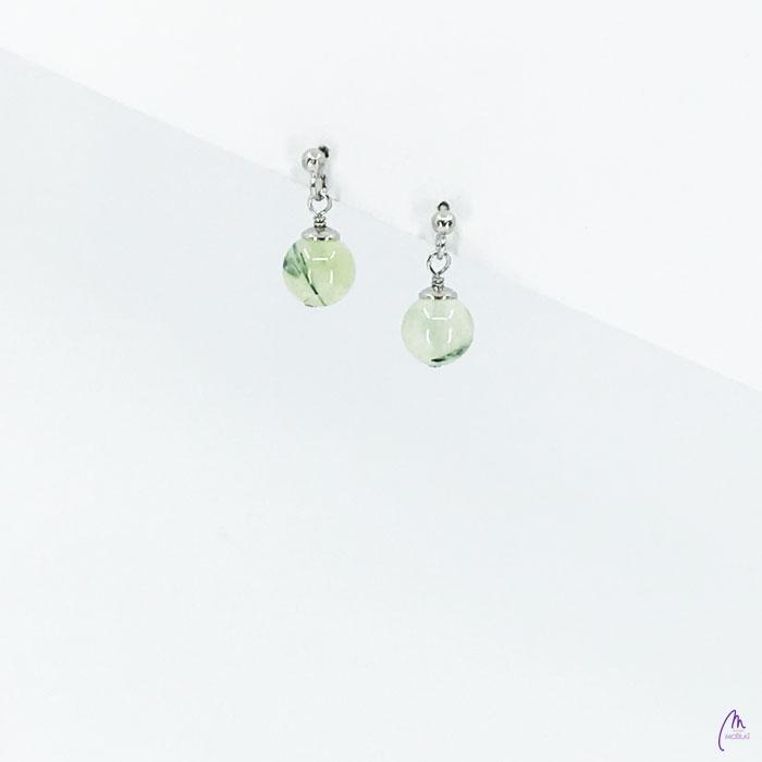 Elegantni uhani kolekcije Le Petit, ki so narejeni iz Prehnita in rodiniranega srebra 925.