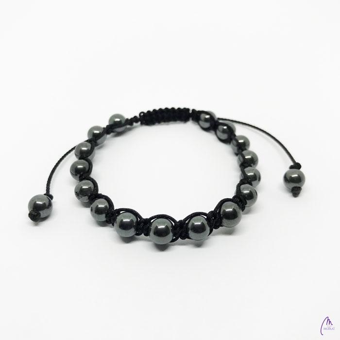 Unisex-Armband aus der Macrame-Kollektion, hergestellt aus Hämatit. Das Armband ist flexibel und leicht zu tragen.