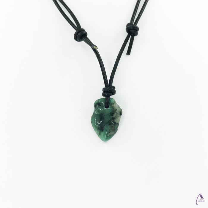 Einzigartiger Anhänger aus der Versy-Kollektion in Smaragd an einem schwarzen Lederband mit verstellbarer Länge (den Knoten nach oben oder unten ziehen). Die Kette ist unisex und für Kinder und Erwachsene geeignet.