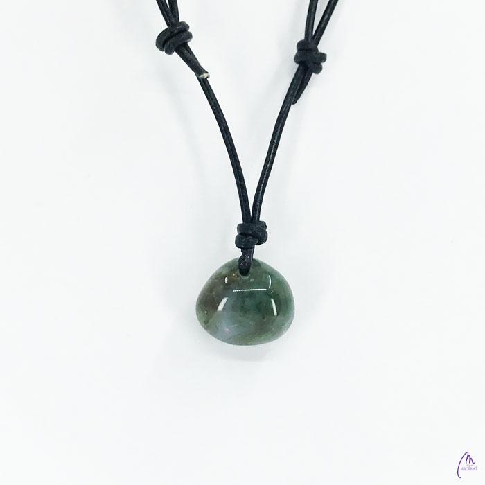Unikaten obesek kolekcije Versy iz Mahovnega Ahata na črnem usnjenem traku s prilagodljivo dolžino (poteg vozla gor oz. dol).