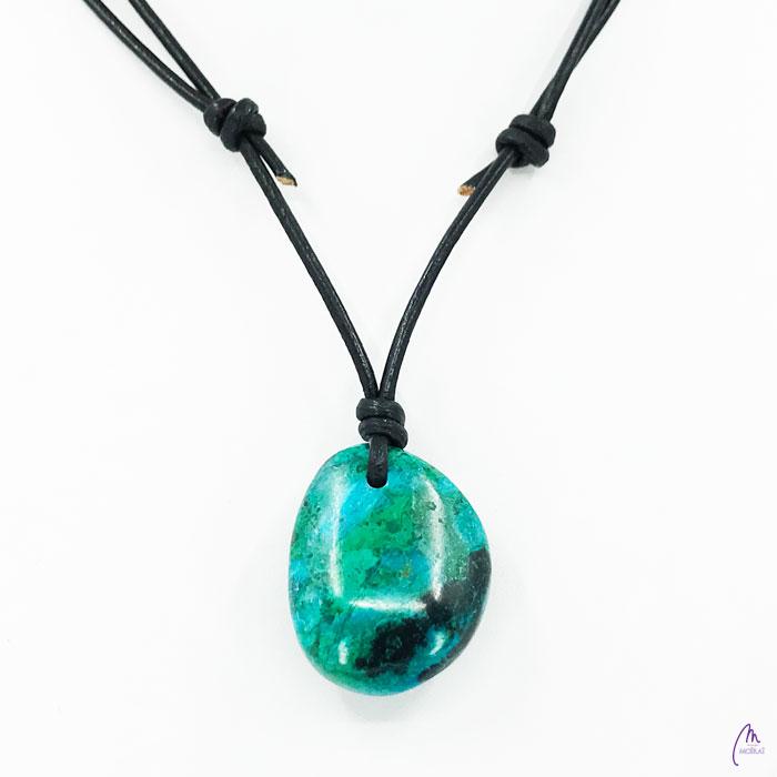 Einzigartiger Anhänger aus der Versy-Kollektion von Hrizokol an einem schwarzen Lederband mit verstellbarer Länge (den Knoten nach oben oder unten ziehen). Die Kette ist unisex und für Kinder und Erwachsene geeignet.