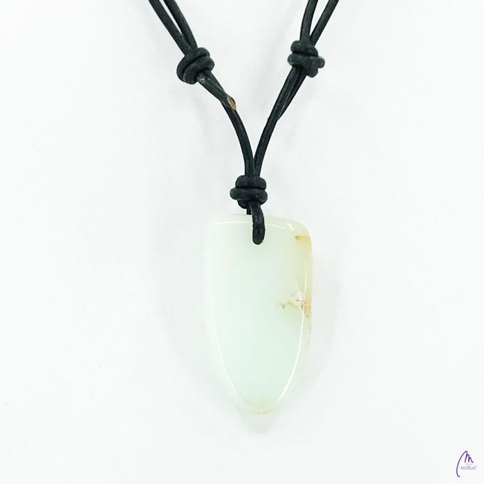 Unikaten obesek kolekcije Versy iz Hrizoprasa na črnem usnjenem traku s prilagodljivo dolžino (poteg vozla gor oz. dol).