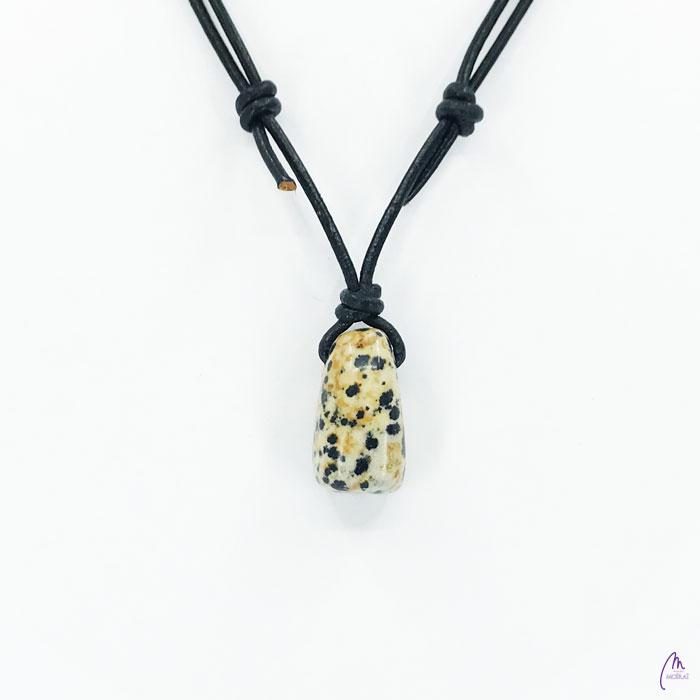 Unikaten obesek kolekcije Versy iz Dalmatinskega Jaspisa na črnem usnjenem traku s prilagodljivo dolžino (poteg vozla gor oz. dol).
