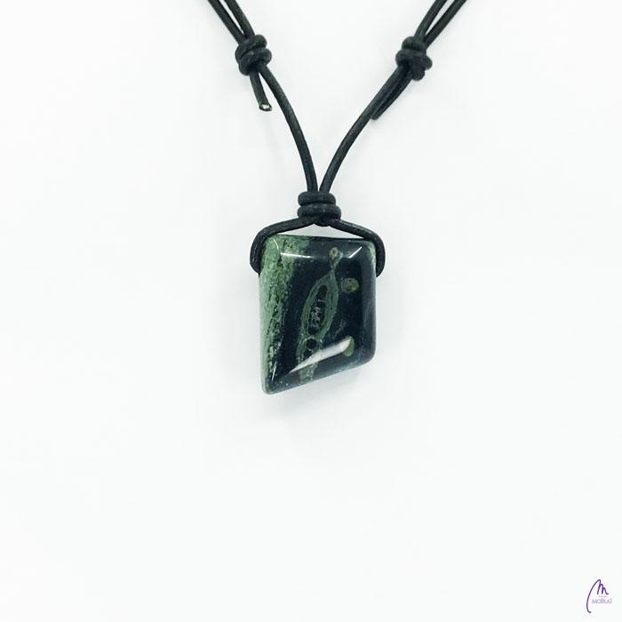 Unikaten obesek kolekcije Versy iz Kambaba Jaspisa na črnem usnjenem traku s prilagodljivo dolžino (poteg vozla gor oz. dol).
