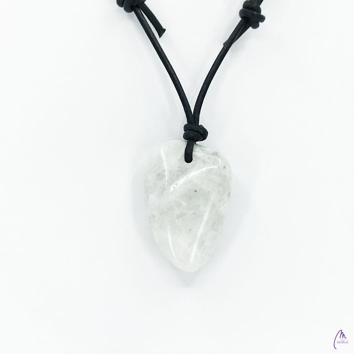 Unikaten obesek kolekcije Versy iz Mavričnega Mesečevega kamna na črnem usnjenem traku s prilagodljivo dolžino (poteg vozla gor oz. dol).