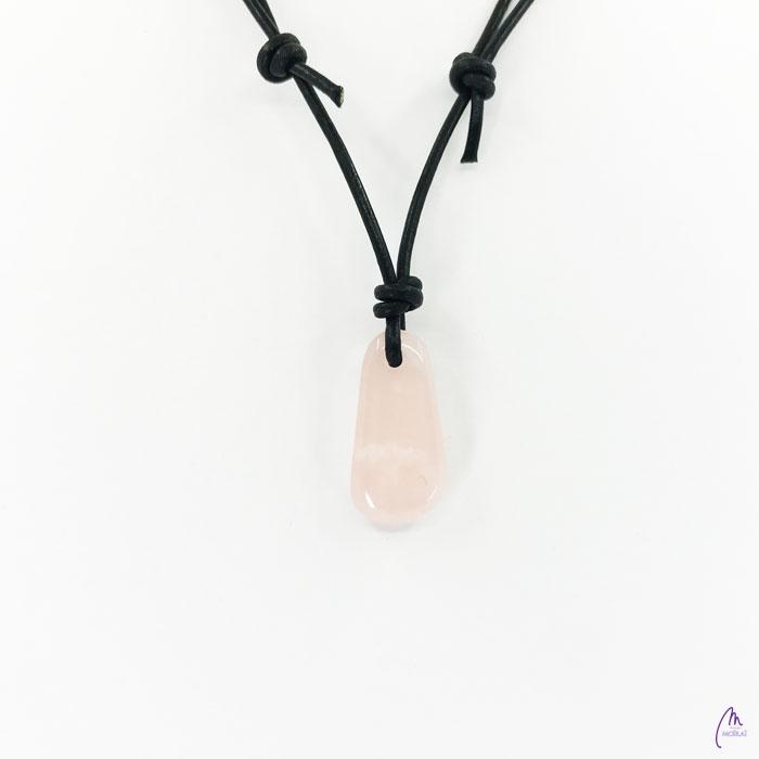 Unikaten obesek kolekcije Versy iz Roževca na črnem usnjenem traku s prilagodljivo dolžino (poteg vozla gor oz. dol). Ogrlica je unisex in je primerna za otroke in odrasle.
