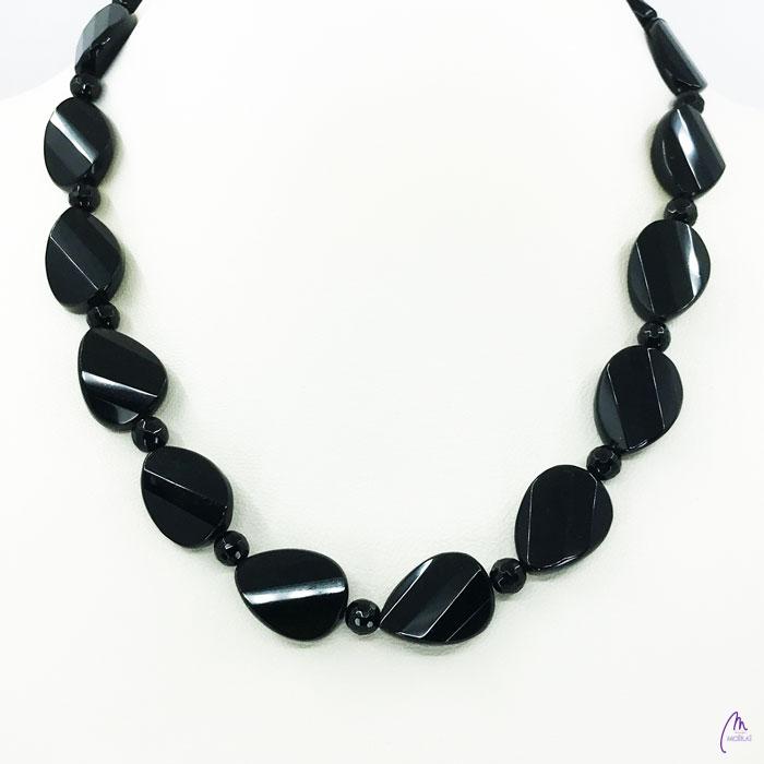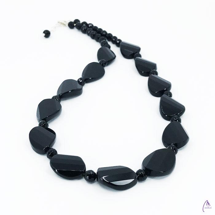 Unikatna ogrlica kolekcije Ella, ki je narejena iz Oniksa. Ogrlica je nizana na mehko, vendar močno jekleno žico ter zaključena s srebrnimi 925 elementi.