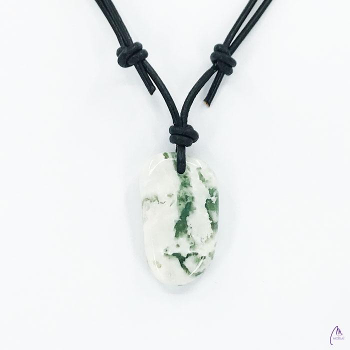 Unikaten obesek kolekcije Versy iz Drevesnega Ahata na črnem usnjenem traku s prilagodljivo dolžino (poteg vozla gor oz. dol).