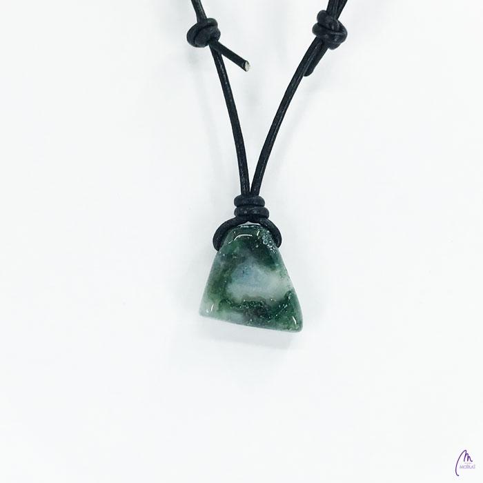 Unikaten obesek kolekcije Versy iz Mahovnega Ahata na črnem usnjenem traku s prilagodljivo dolžino (poteg vozla gor oz. dol).