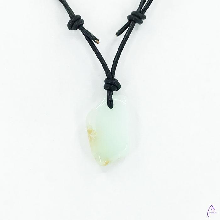 Unikaten obesek kolekcije Versy iz Hrizoprasa na črnem usnjenem traku s prilagodljivo dolžino (poteg vozla gor oz. dol).