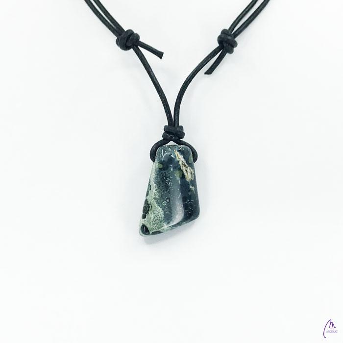Unikaten obesek kolekcije Versy iz Kambaba Jaspisa na črnem usnjenem traku s prilagodljivo dolžino (poteg vozla gor oz. dol).