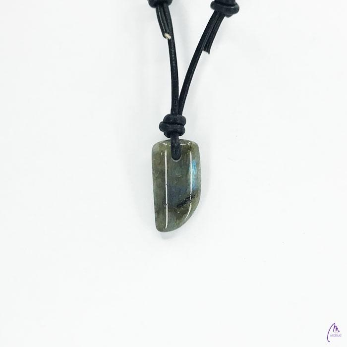 Unikaten obesek kolekcije Versy iz Labradorita na črnem usnjenem traku s prilagodljivo dolžino (poteg vozla gor oz. dol).