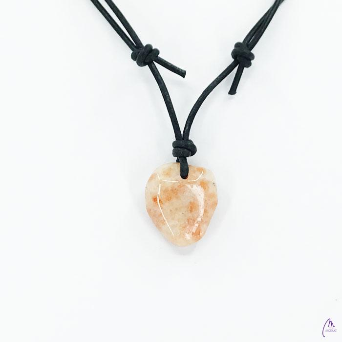Unikaten obesek kolekcije Versy iz Sočevega kamna na črnem usnjenem traku s prilagodljivo dolžino (poteg vozla gor oz. dol).