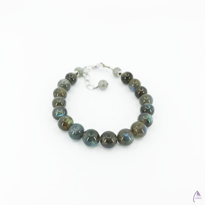 Elegantna zapestnica kolekcije Clasic, ki je narejena iz Labradorita. Zapestnica je nizana na mehko, vendar močno jekleno žico in zaključena s srebrnimi rodiniranimi elementi. Slika je simbolična. Možna so manjša odstopanja v barvi in teži.