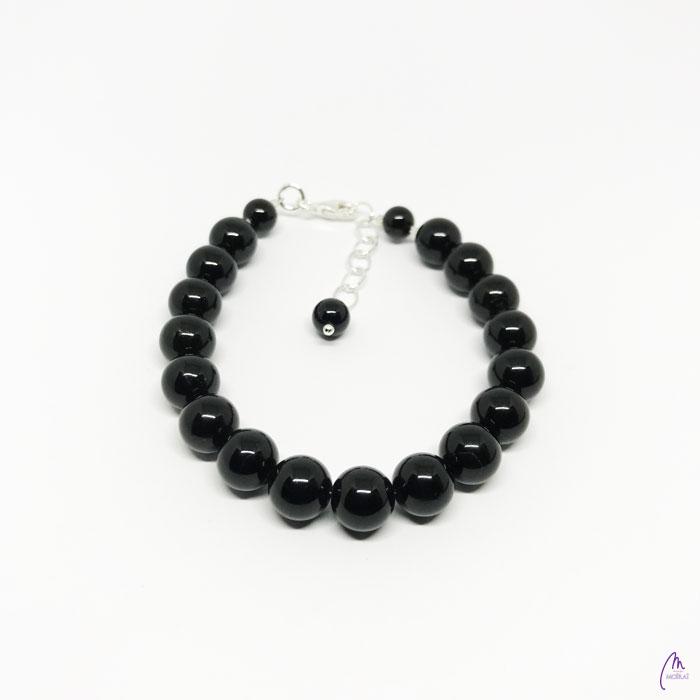 Elegantna zapestnica kolekcije Clasic, ki je narejena iz črnega Turmalina ter srebrnih 925 elementov, nizana na mehko, vendar močno jekleno žico in zaključena s srebrnimi elementi.