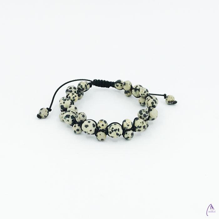 Unisex zapestnica kolekcije Macrame, ki je narejena iz Dalmatinskega Jaspisa. Zapestnica je prilagodljiva in enostavna za nošenje.